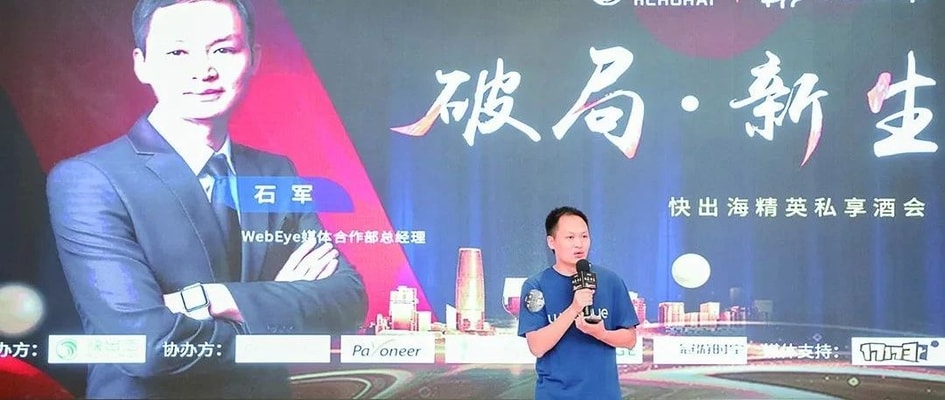 WebEye 自2015年成立以来一直致力于为国内出海从业者提供数字营销、媒体传播及流量服务。WebEye 媒体合作部总经理——石军先生在致辞中表示:“现在全球各行业都受到了来自疫情的影响,众多中小企业抱团取暖,我相信在疫情后,中国出海开发者能走的更远,WebEye 也将继续为国内出海企业提供服务,帮助出海从业者走出疫情的影响,去拥抱更为广阔的市场。”